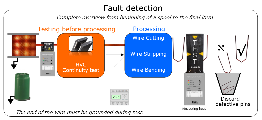 Adding this measuring head before winding a stator, rotor, coil, transformer, hairpin, etc., ensures that the final product is not turned into scrap due to missing or insufficient insulation of the wire. Checking missing overlap for wrapped wire is also possible.